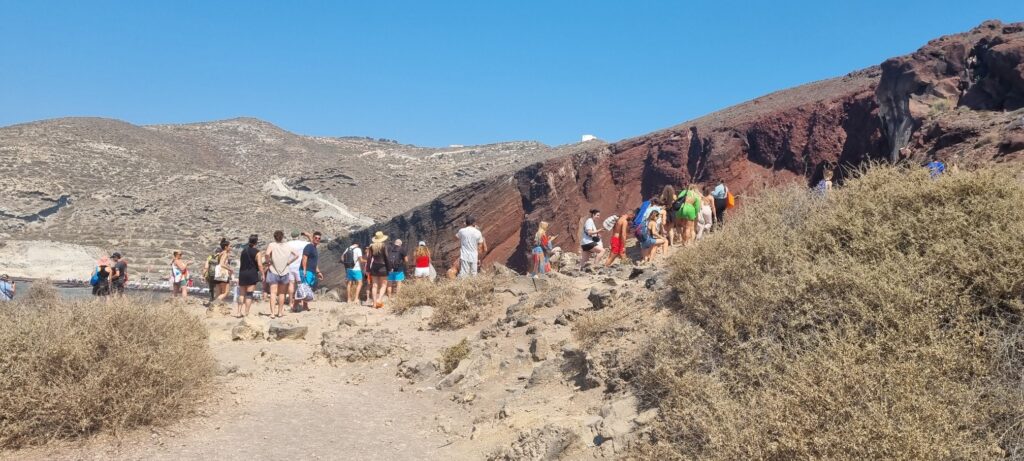 Um 11:00 machten sich Greg und Ich zum Red Beach auf. Der Zustrom ähnlich wie in Oia. Wir entschieden uns, zum Kamari Beach zu wechseln. Eine gute Idee.