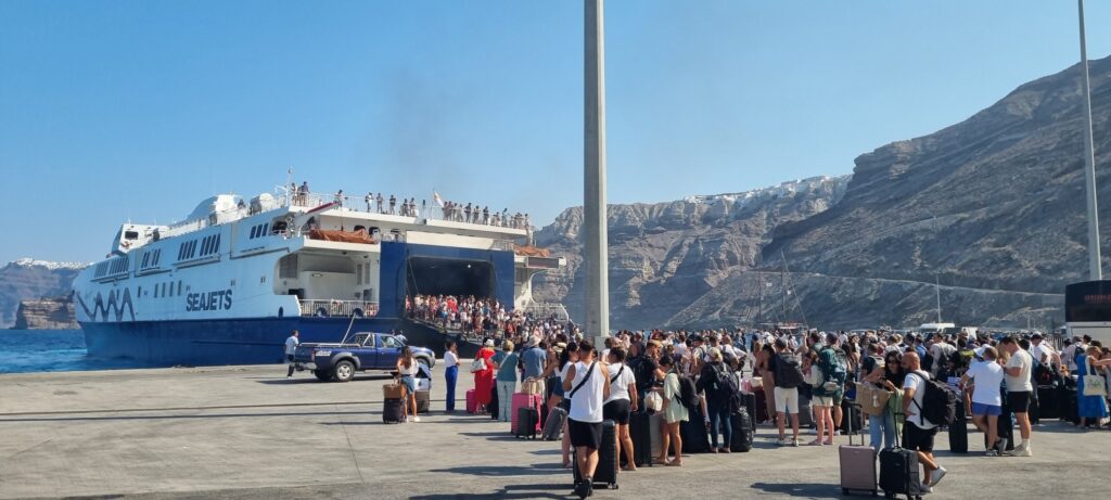 Resumee: Die Insel Santorini ist nicht wirklich sehenswert. Es gibt fast keine Vegetation. Sehr kahl. Die bekannte Fotostadt Oia (gesprochen Ia, da ein „O“ am Anfang nicht gesprochen wird) ist für maximal 2 Tage sehenswert. Kleine überfüllte Gässchen mit tausenden von Touristen, die bis in die Nacht hinein unterwegs sind. Unsere Unterkunft direkt in der Stadt war teuer und eher klein (5 Nächte für € 3613). Die Terrasse hatte nur einen Sonnenschirm, der für 4 Personen zu klein war, ebenso diente sie als Durchgangsweg für andere Unterkünfte. Aufgrund der schönen Wetterlage, war es natürlich inmitten der Betonhäuser sehr heiss. Das Meer ist von Oia 242 Stufen entfernt. Dort angekommen, muss man noch ein bisschen entlang der Küste gehen, damit man in eine ruhige von Felsen umgebene Bucht kommt. Der Zugang in das Wasser eher schwierig. Unterkünfte mit kleinen Pools sind eher rar und wahrscheinlich sehr teuer.