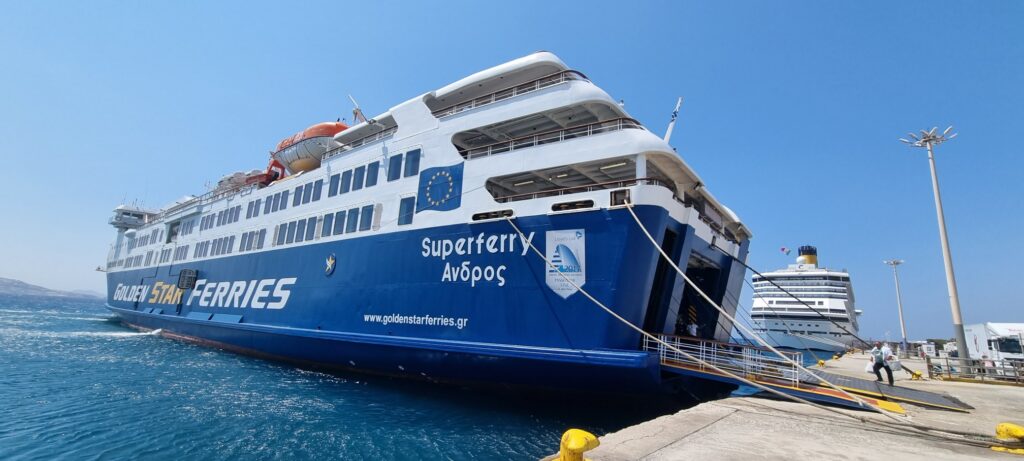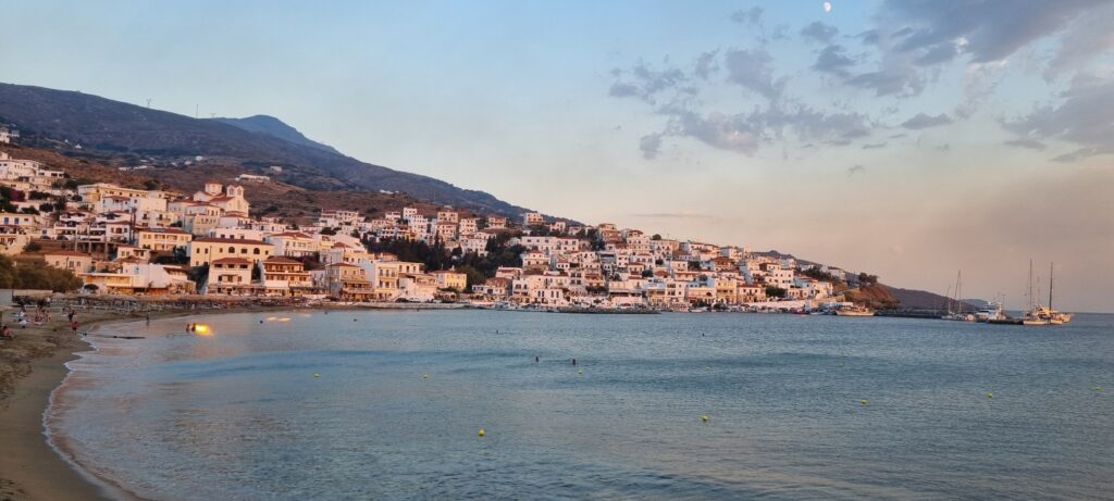 13:45 – 16:10 (2:25 Stunden) weiter mit der Fähre nach Andros. Preis: € 21,00.-