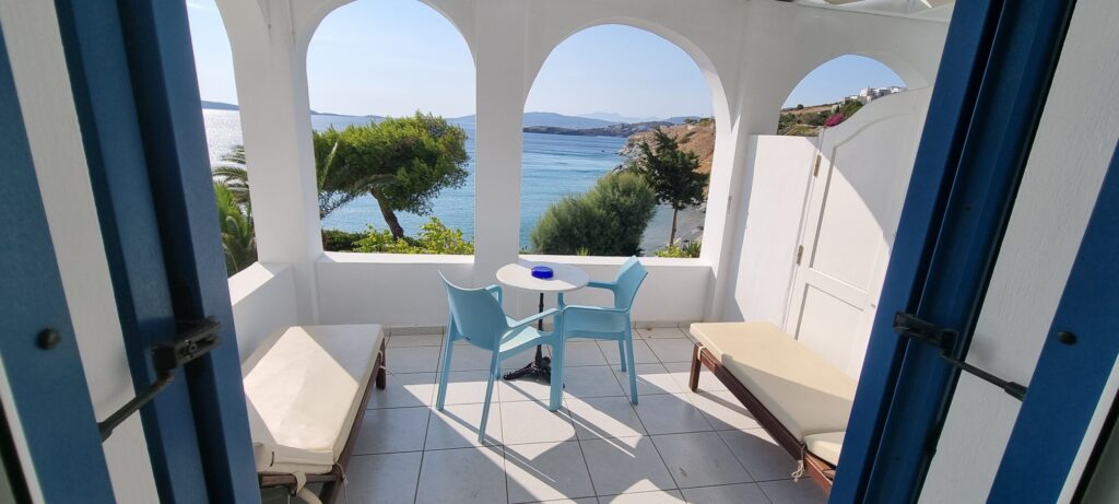 Unterkunft: Aneroussabeach; schon bekannte Unterkunft; Super Anlage bei dem Ort Batsi; Preis: € 1190.- (für 2 Personen die ich leider alleine zahlen muss, wie schon auf Santorini 😤🤷♂️)
