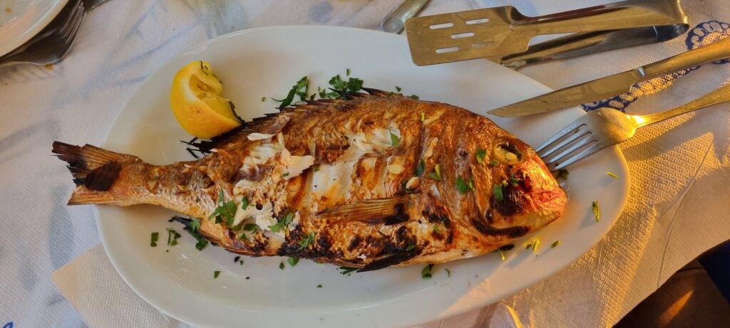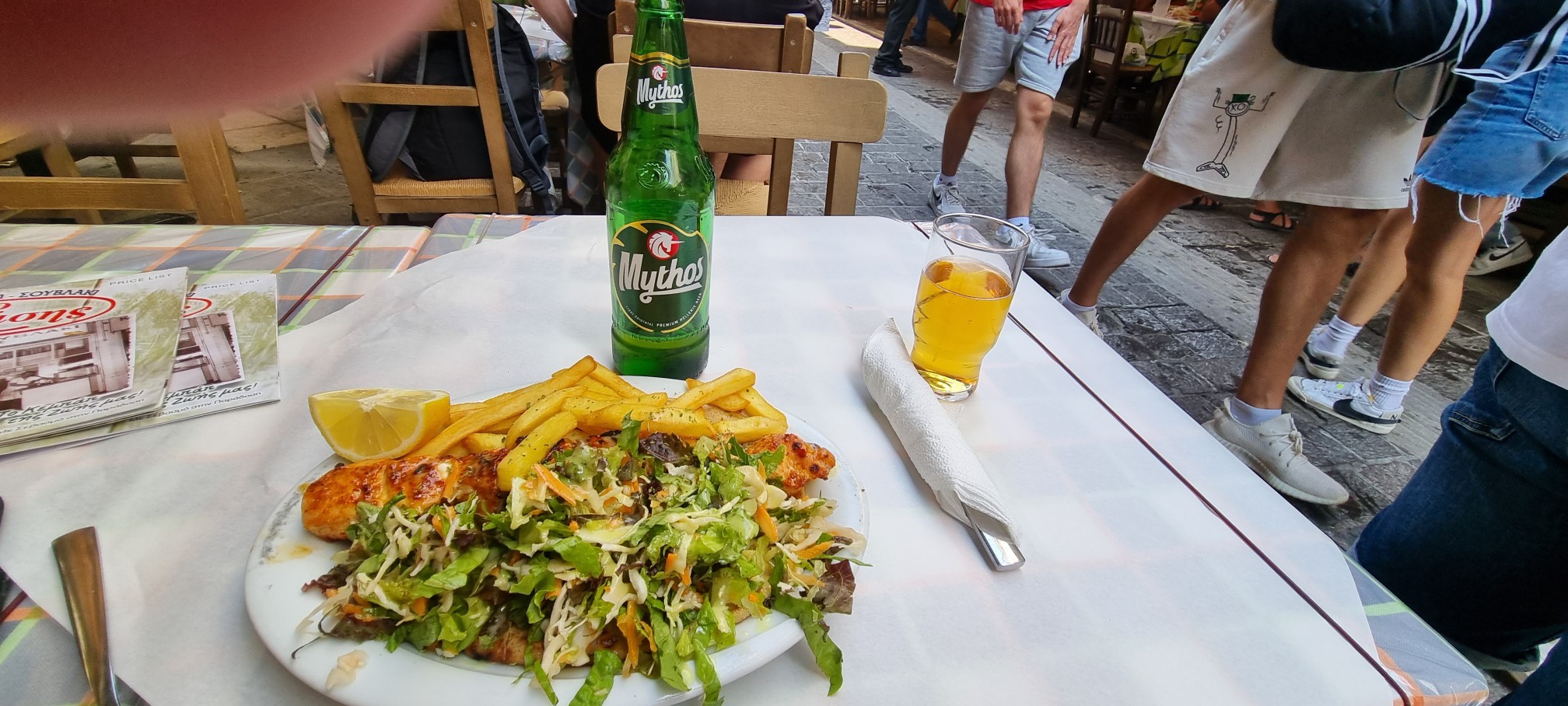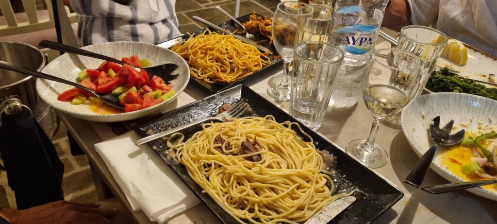 Am Abend waren wir, wie immer, in Batsi essen. Obwohl wir uns vorgenommen hatten weniger zu essen, war es wieder viel zu viel. Auch deswegen, weil die Portionen diesmal enorm waren. Vielleicht sollten wir die Vorspeisen weglassen 😱.