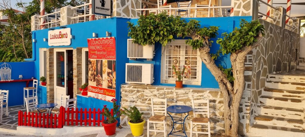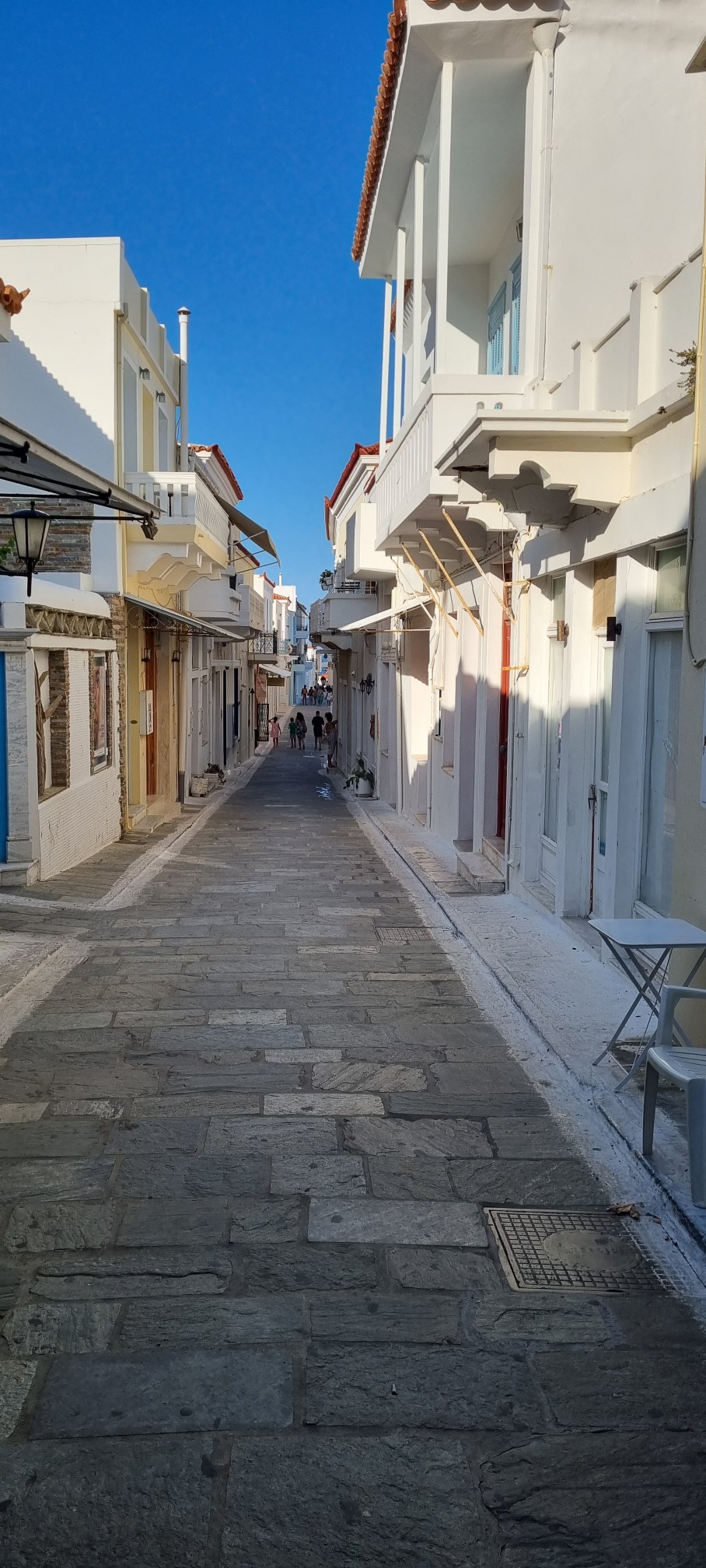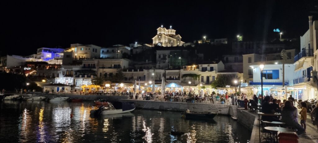 Mit unserem für 1 Tag geborgten Auto (€ 70 incl. full insurance) fuhren wir um 15:30 in die Stadt Andros (Hora). Eigentlich wie immer, wenn wir auf der Insel sind.