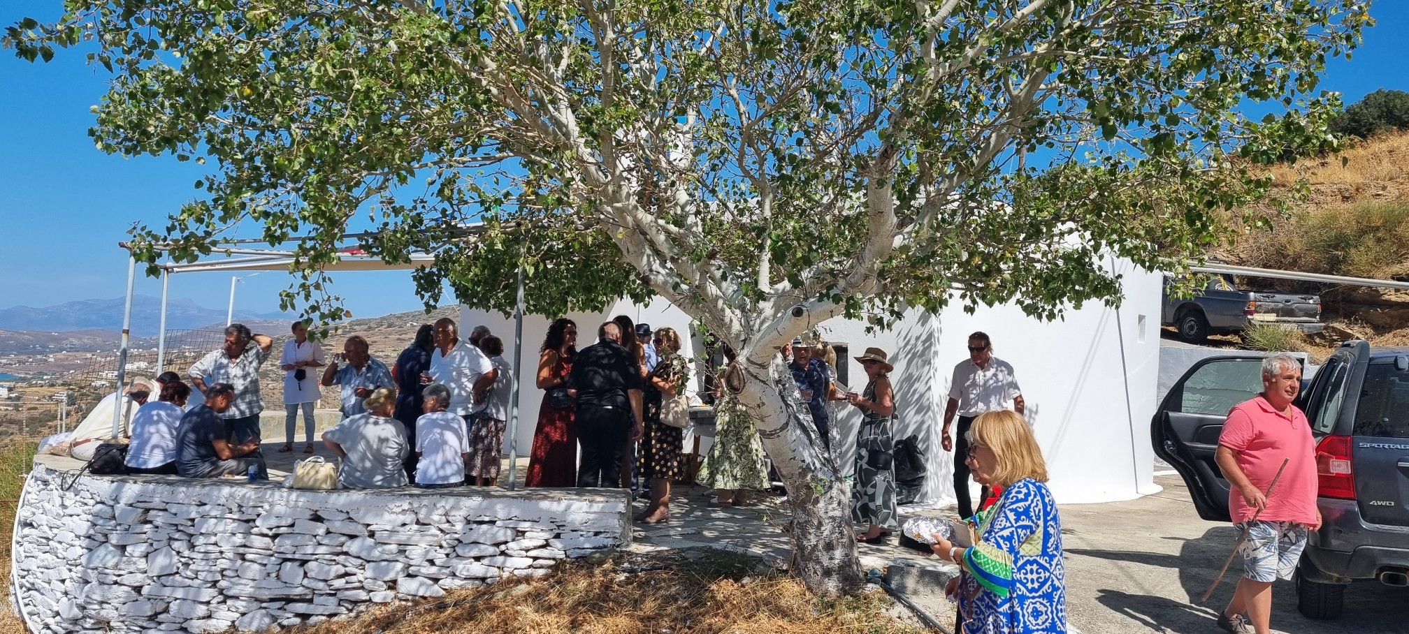Um 10:00 machten wir uns mit dem Auto zu unserem Grundstück auf. Es war das jährliche Fest zu Ehren des Schutzpatrons von Stivari (=Siedlung), wo sich auch unser Grundstück befindet. Nach dem Gottesdienst, wurde gegessen, getrunken und geplaudert. Wir stellten uns mit Süßigkeiten ein.